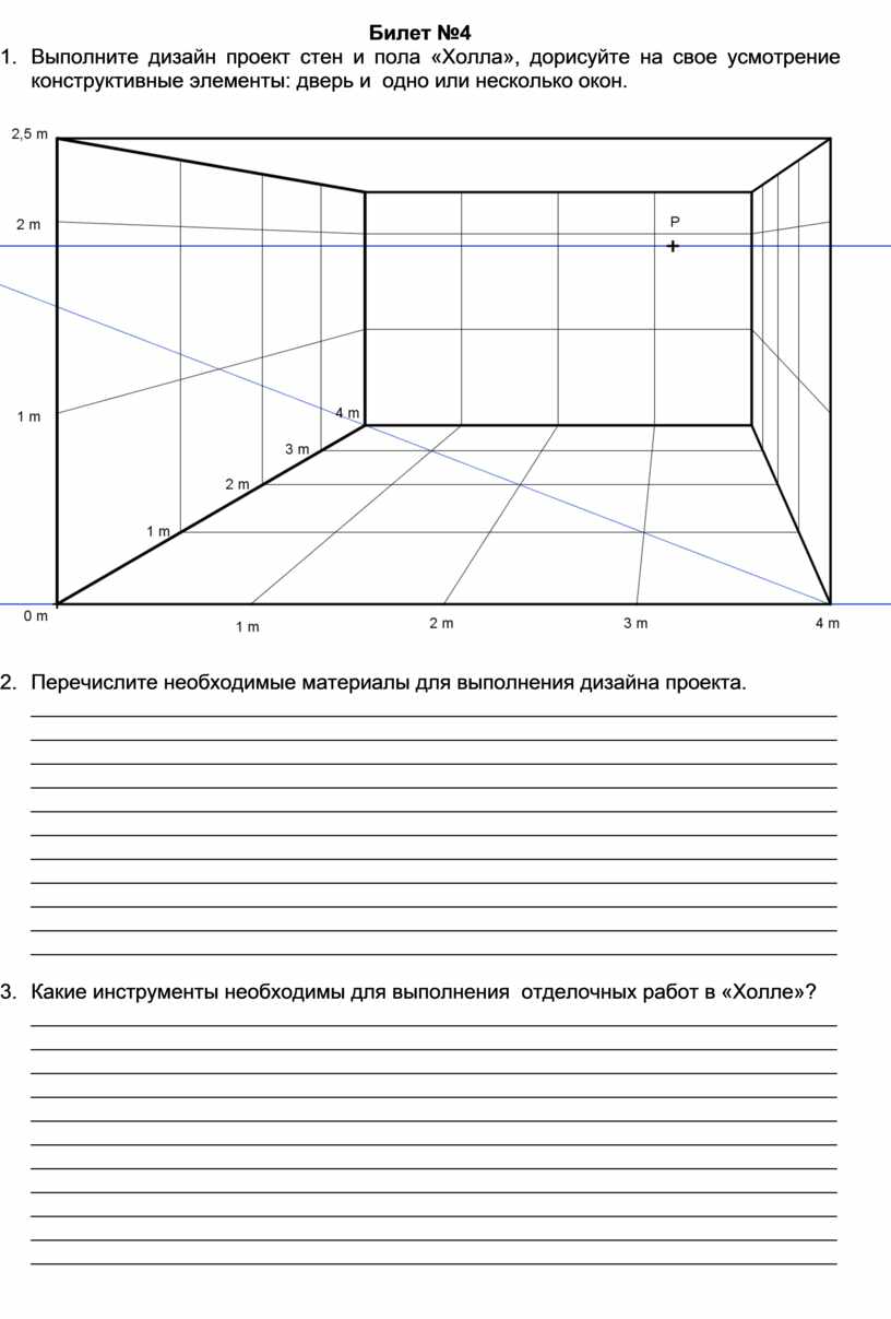 1. Выполните дизайн проект стен и пола «Холла», дорисуйте на свое усмотрение конструктивные элементы: дверь и одно или несколько окон.