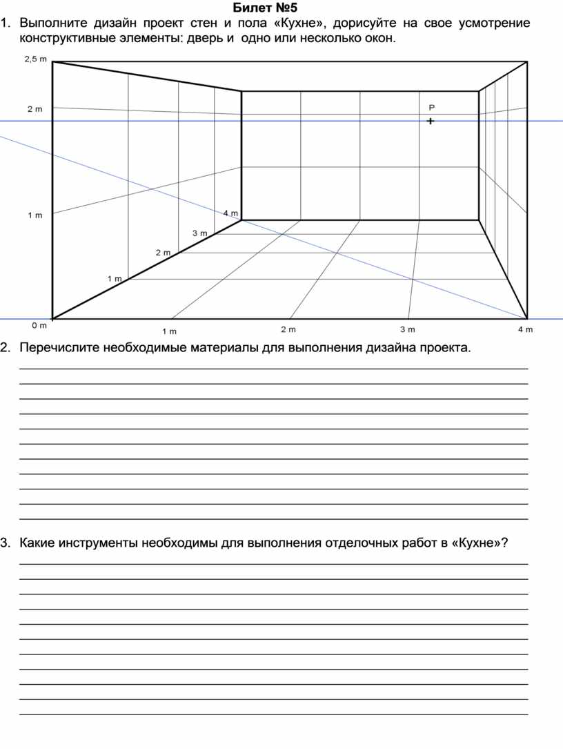 1. Выполните дизайн проект стен и пола «Кухне», дорисуйте на свое усмотрение конструктивные элементы: дверь и одно или несколько окон.