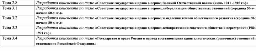Разработка конспекта по теме «Советское государство и право в период демократизации советского общества и перестройки (1984-1991 гг.)» |
