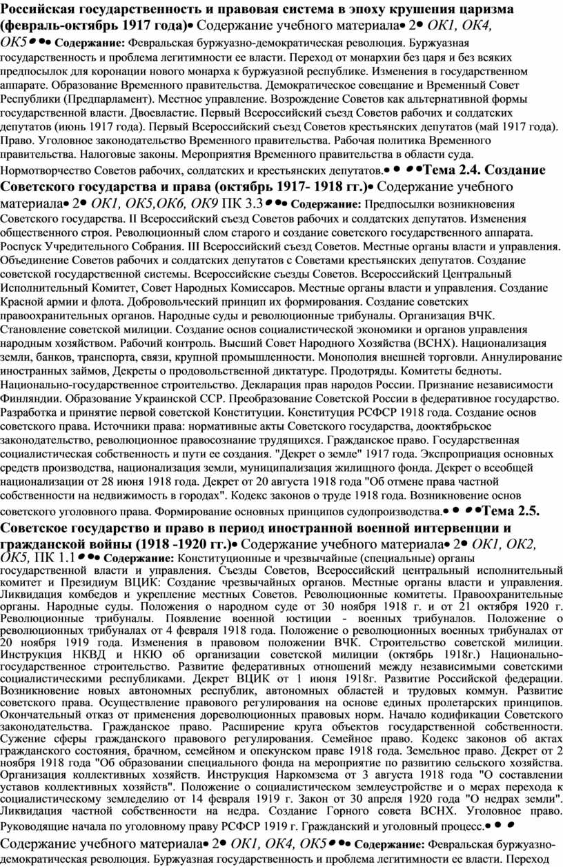 Разработка конспекта по теме «Российская государственность и правовая система в эпоху крушения царизма (февраль-октябрь 1917 года)» |
