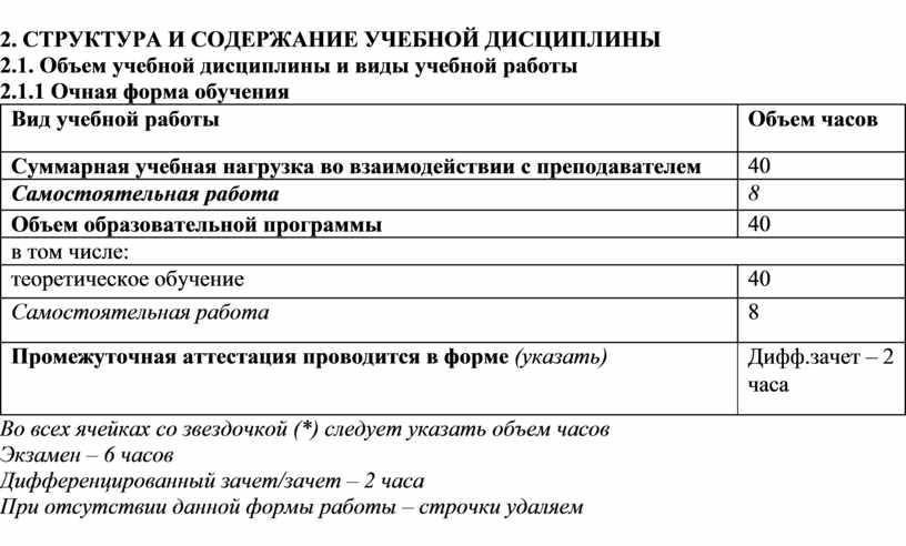 2. СТРУКТУРА И СОДЕРЖАНИЕ УЧЕБНОЙ ДИСЦИПЛИНЫ