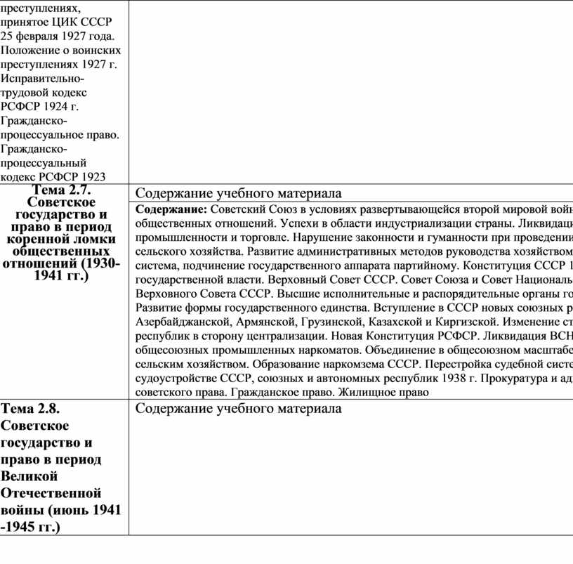 Разработка конспекта по теме «Советское государство и право в период коренной ломки общественных отношений (1930-1941 гг.)» |