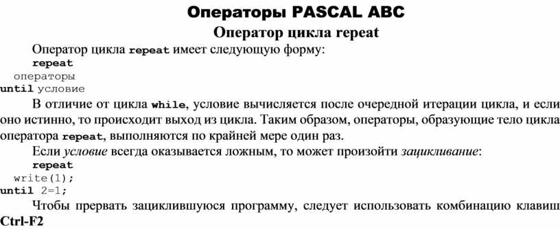 Оператор цикла repeat