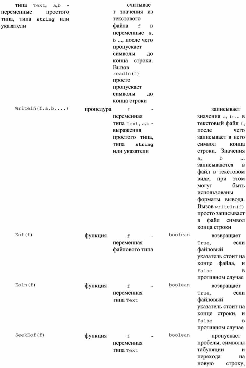 записывает значения a, b ... в текстовый файл f, после чего записывает в него символ конца строки. Значения a, b ... записываются в файл в текстовом виде, при этом могут быть использованы форматы вывода. Вызов writeln(f) просто записывает в файл символ конца строки |