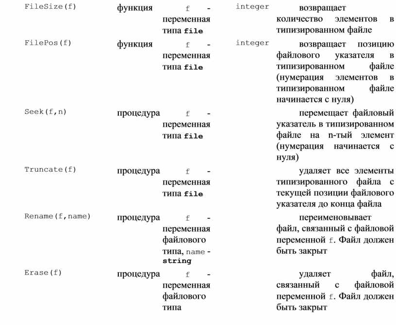перемещает файловый указатель в типизированном файле на n-тый элемент (нумерация начинается с нуля) |