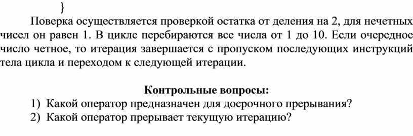 2) Какой оператор прерывает текущую итерацию?