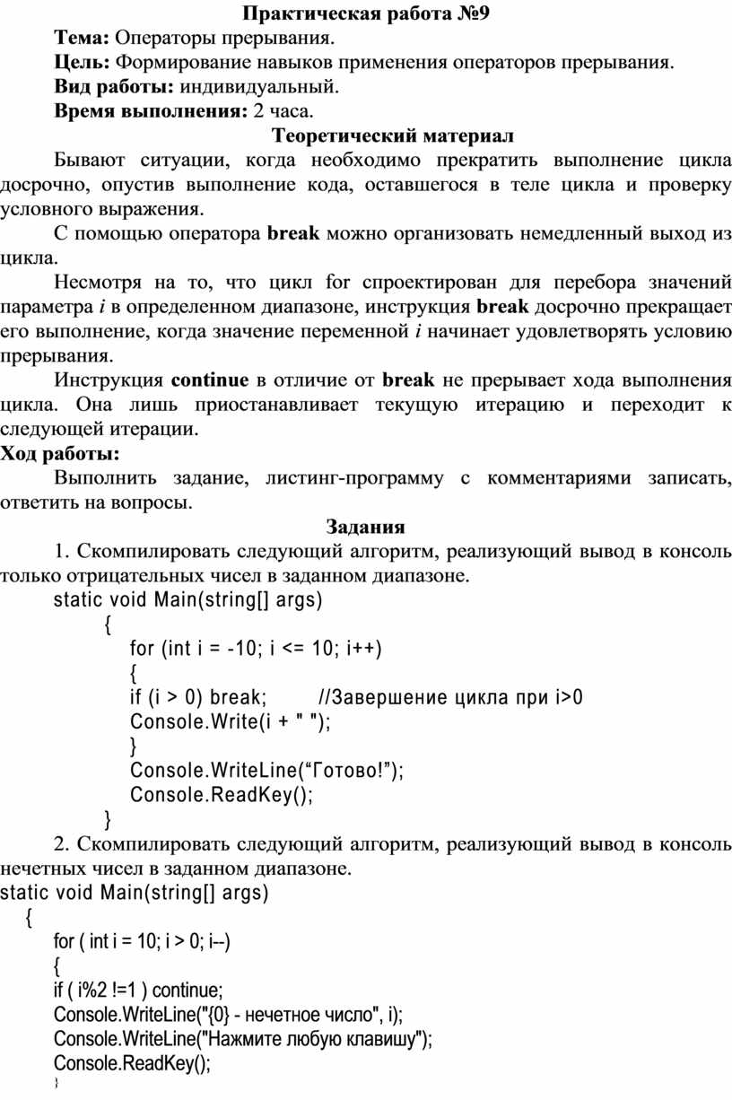 Тема: Операторы прерывания.