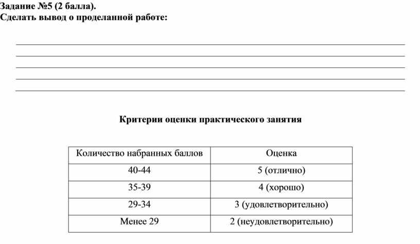Критерии оценки практического занятия