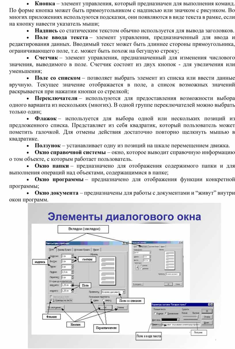 · Окно справочной системы – окно, которое выводит справочную информацию о том объекте, с которым работает пользователь.