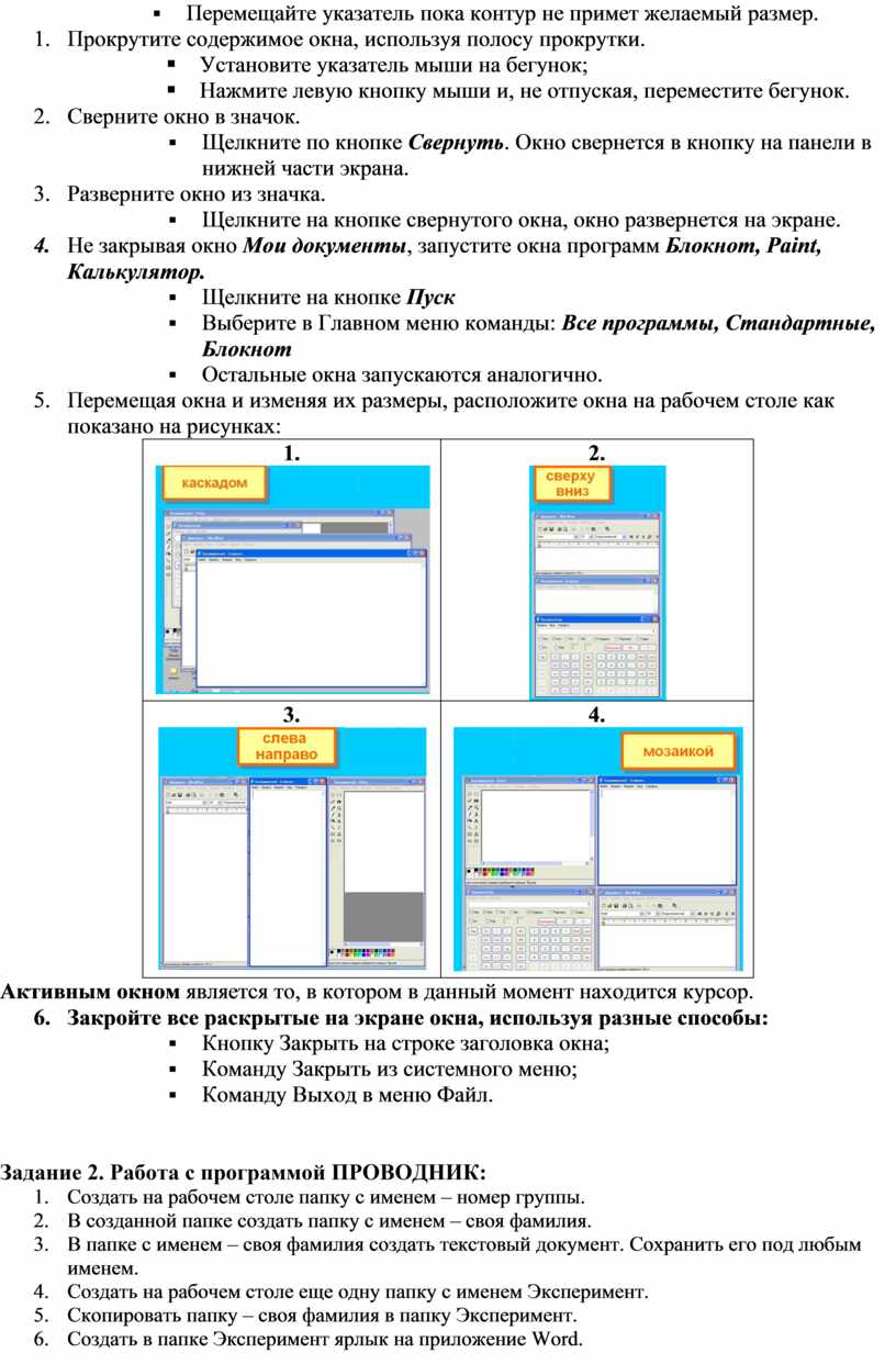 Окна можно закрывать, перемещать, изменять их размеры, свертывать в кнопки на панели задач или развертывать на весь экран.