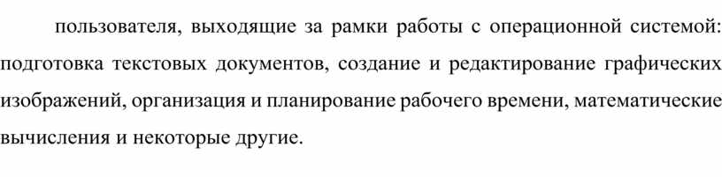 Стандартные программы: В стандартную поставку системы Windows входит набор приложений, которые по минимуму обеспечивают потребности пользователя, выходящие за рамки работы с операционной системой: подготовка текстовых документов, создание и редактирование графических изображений, организация и планирование рабочего времени, математические вычисления и некоторые другие.