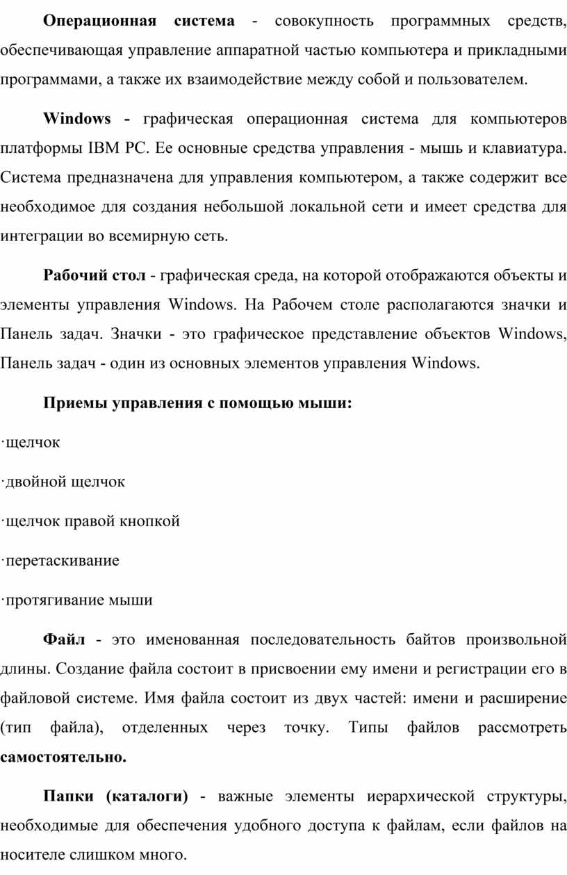 Windows - графическая операционная система для компьютеров платформы IBM PC. Ее основные средства управления - мышь и клавиатура. Система предназначена для управления компьютером, а также содержит все необходимое для создания небольшой локальной сети и имеет средства для интеграции во всемирную сеть.