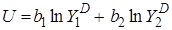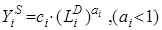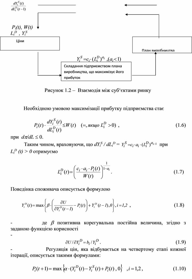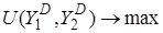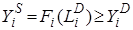 позначення: YiS - об‘єм пропозиції i–го продукту i–м підприємством; YiD - об‘єм попиту на i–й продукт з боку споживача; LS - пропозиція ресурса (постійна величина); L1D - попит на ресурс з боку i–го підприємства; Fi(LiD) –виробнича функція i–го підприємства; U - функція корисності споживача.
