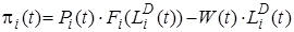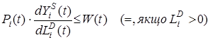 2. i–е підприємство, виходячи з заданих йому цін, обирає таке співвідношення витрат та результатів виробництва (L1D(t), YiS(t)), які максимізують його прибуток