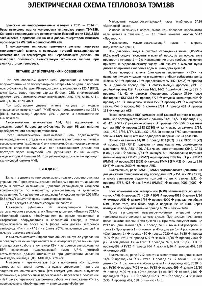 ЭЛЕКТРИЧЕСКАЯ СХЕМА ТЕПЛОВОЗА ТЭМ18В