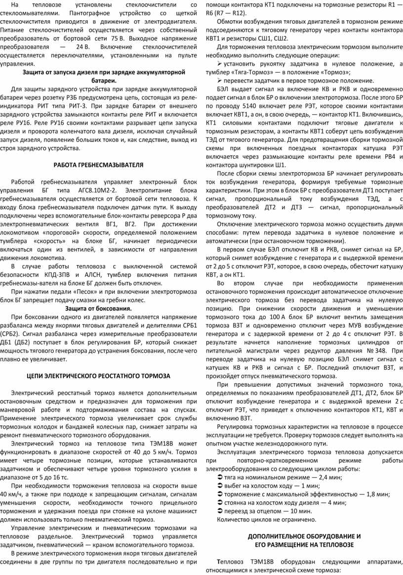 Тепловоз ТЭМ18В оборудован следующими аппаратами, относящимися к электрической схеме тормоза: