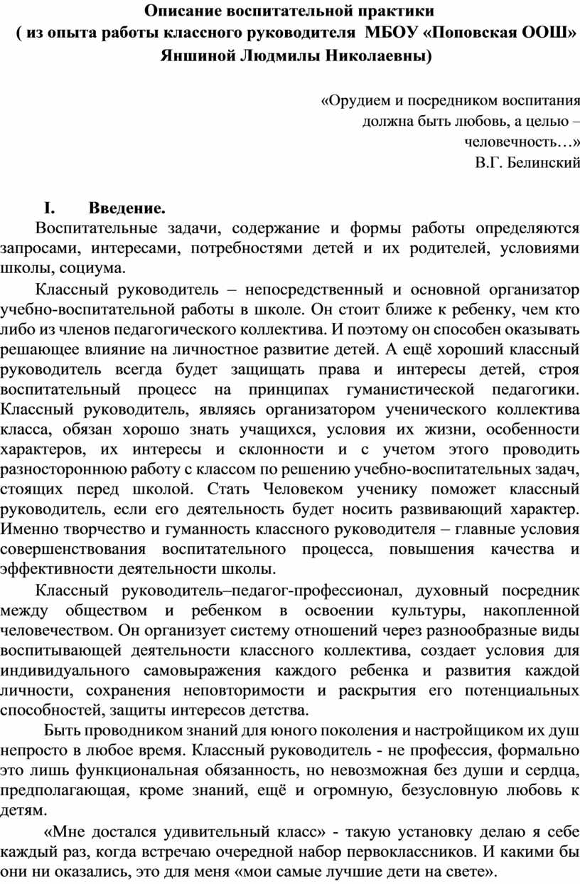 II. Описание воспитательной практики