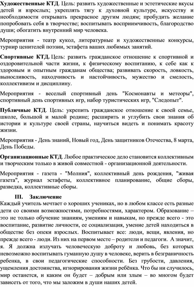 Среди всех форм воспитательной работы, я считаю, что КТД обладают объективными наибольшими воспитательными возможностями, так как они: