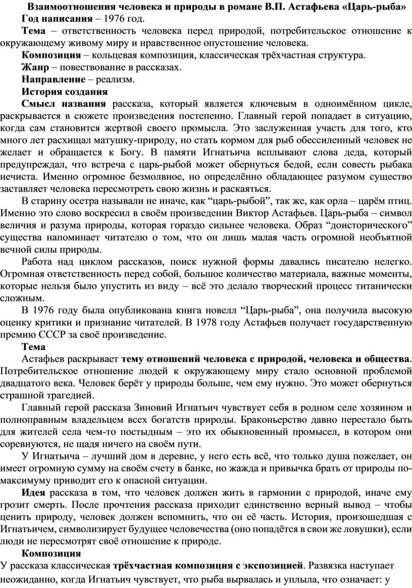 Взаимоотношения человека и природы в романе В.П. Астафьева «Царь-рыба»