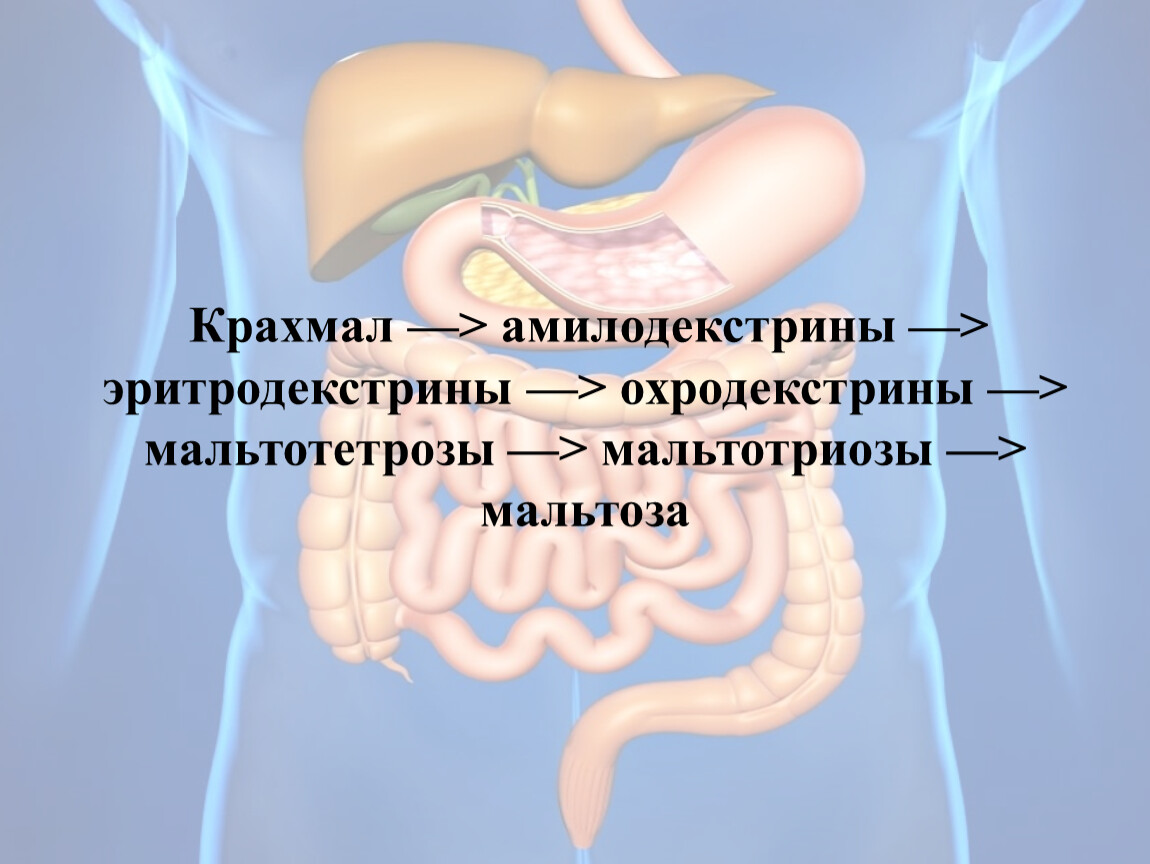 Крахмал —> амилодекстрины —> эритродекстрины —> охродекстрины —> мальтотетрозы —> мальтотриозы —> мальтоза