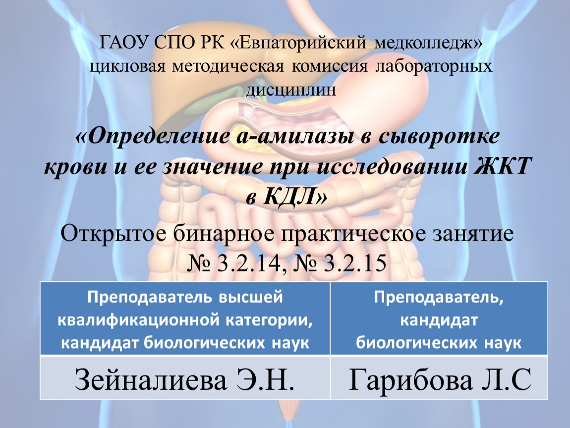 «Определение а-амилазы в сыворотке крови и ее значение при исследовании ЖКТ в КДЛ»