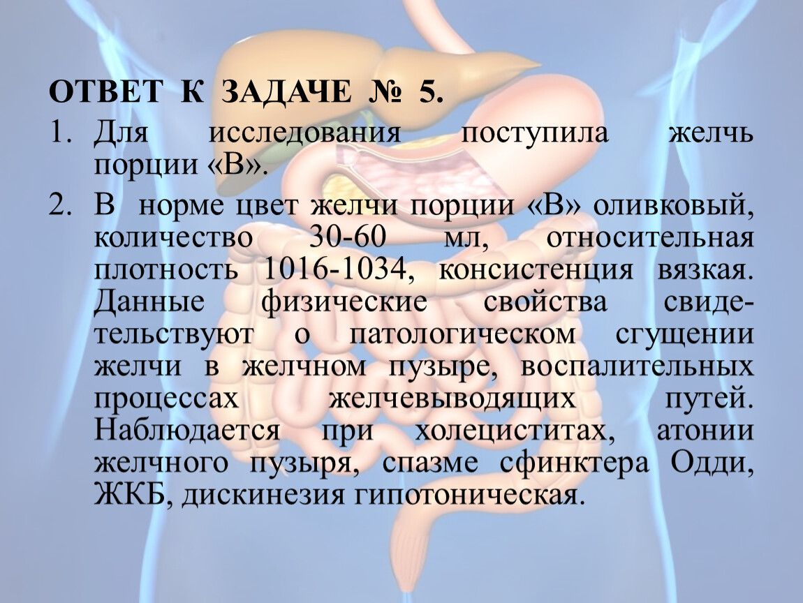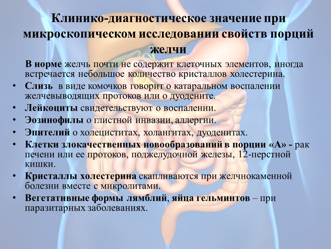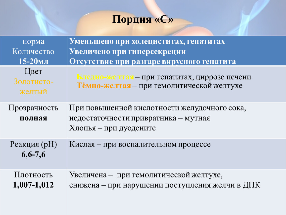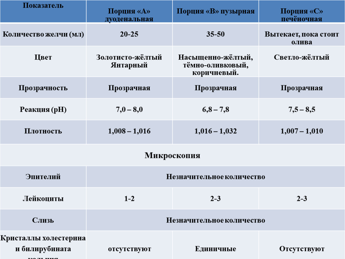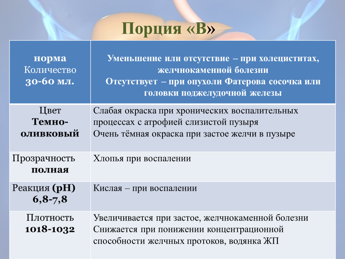 Для исследования поступила желчь порции «В».