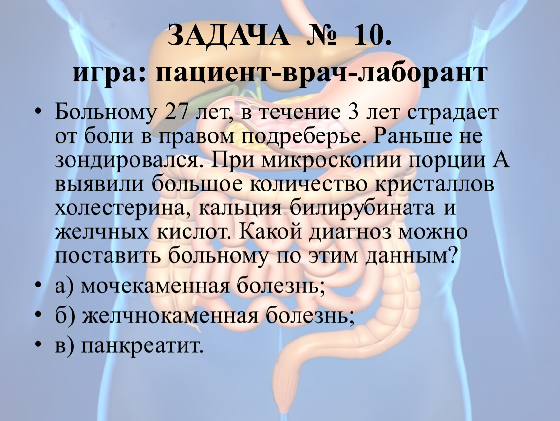 ЗАДАЧА № 10. игра: пациент-врач-лаборант