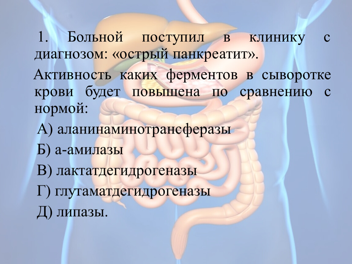 г) Клинико-диагностическое значение показателей дуоденального исследования и α-амилазы сыворотки крови при заболеваниях ЖКТ:
