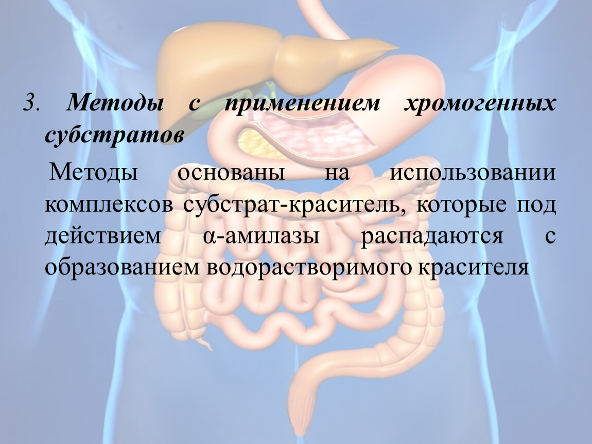 Методы основаны на использовании комплексов субстрат‑краситель, которые под действием α‑амилазы распадаются с образованием водорастворимого красителя
