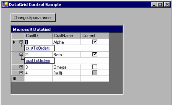 Если элемент управления DataGridView привязан к данным с помо- щью нескольких связанных таблиц СУБД и в сетке разрешены переходы, в каждом ряду сетки отображаются расширители.