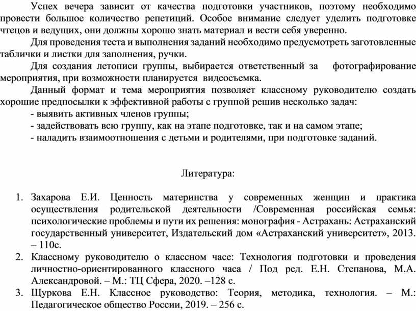 3. Щуркова Е.Н. Классное руководство: Теория, методика, технология. – М.: Педагогическое общество России, 2019. – 256 с.