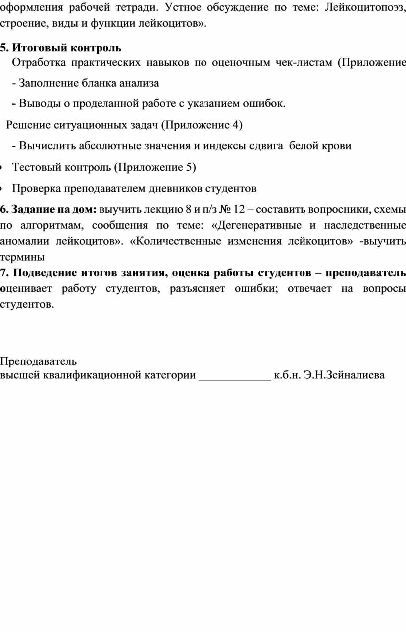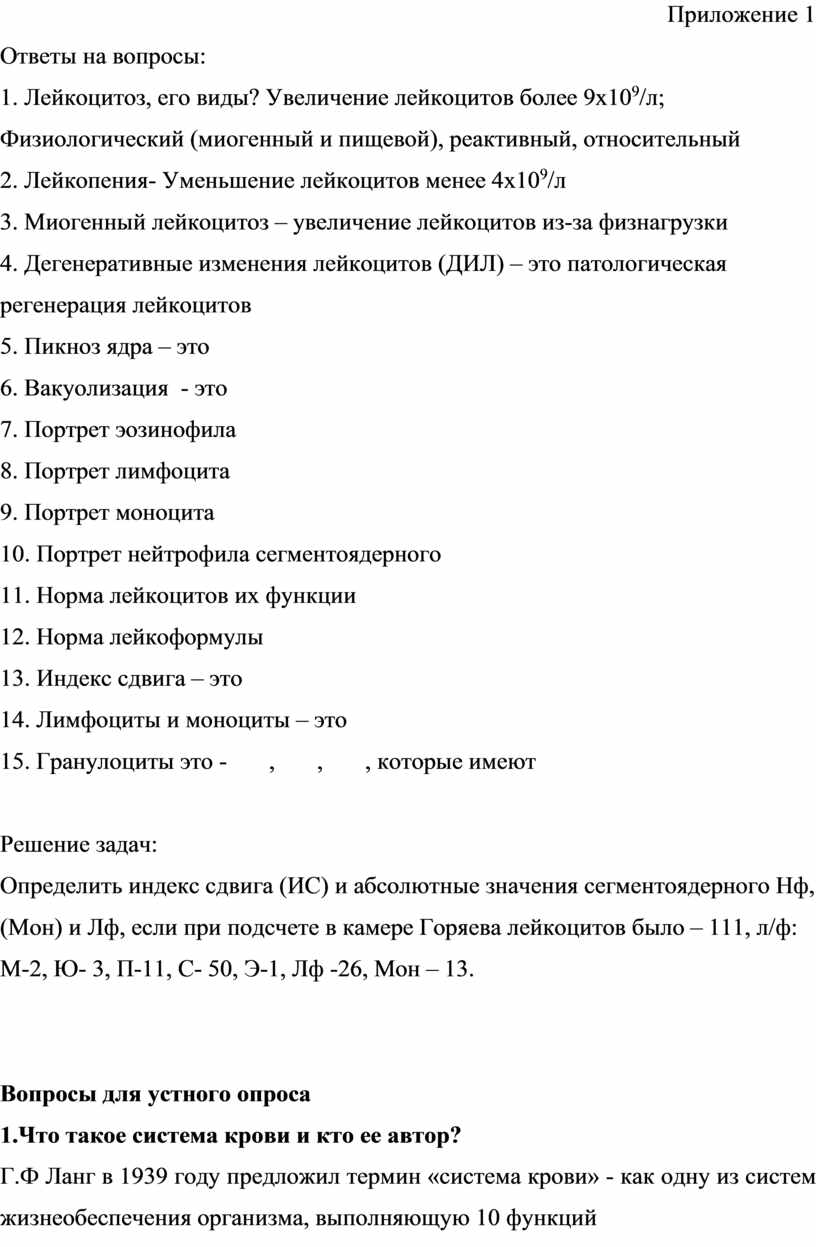 Внутридисциплинарные связи: Количественные изменения лейкоцитов; Возрастные, половые и конституциональные изменения крови.