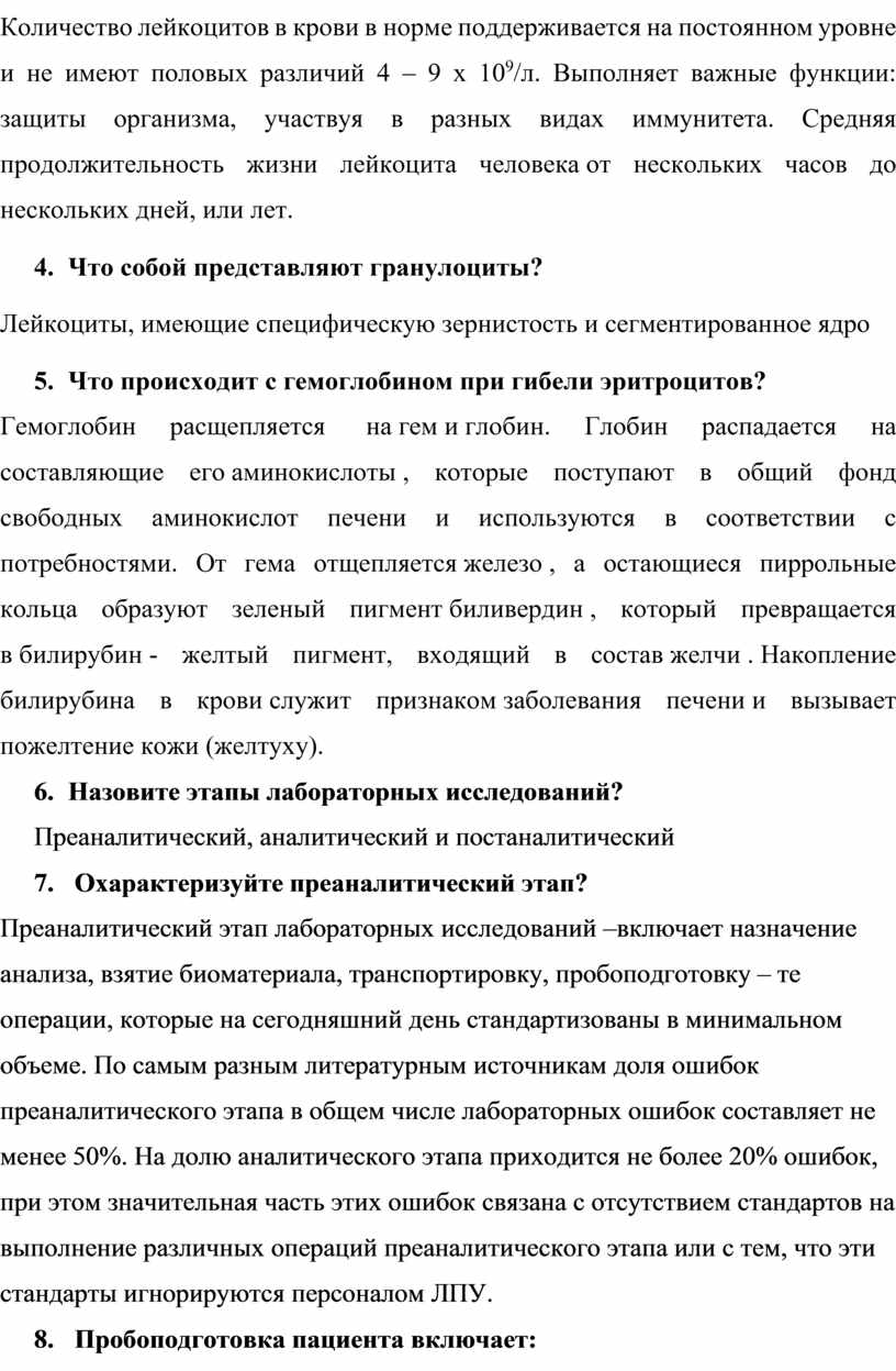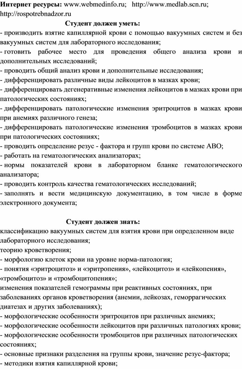 - особенности подготовки пациента к химико-микроскопическим, и гематологическим лабораторным исследованиям;