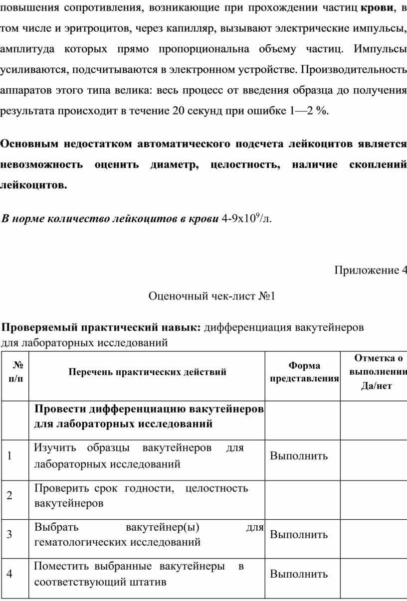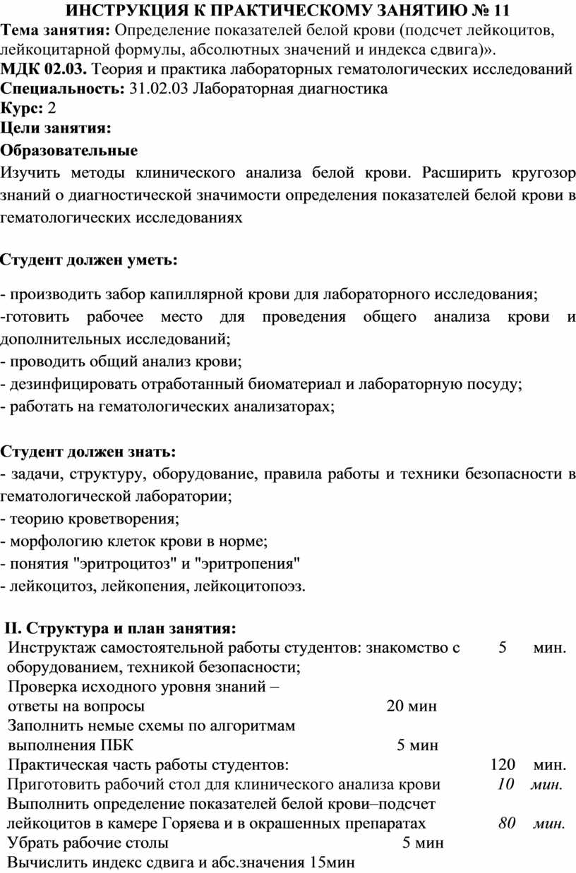 МДК 02.03 Теория и практика гематологических лабораторных исследований 1 и 2 категории сложности