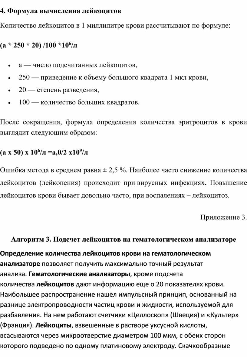 «Определение показателей белой крови (подсчет лейкоцитов, лейкоцитарной формулы, абсолютных значений и индекса сдвига)»