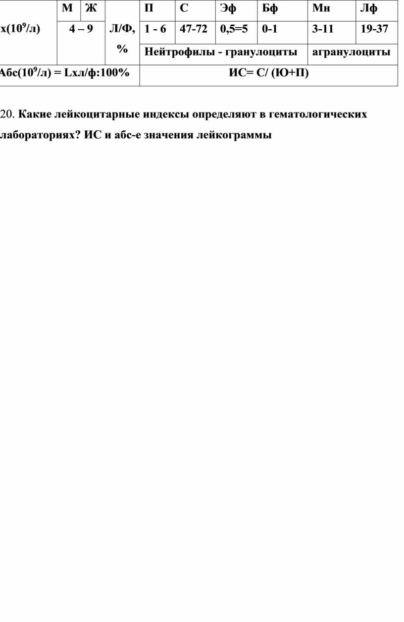 A. относит. кол-во лейкоформулы и число лейкоцитов; Б. концентрация гемоглобина в Э; В. соотношение Нb и Ht крови; Г. абсолютное кол-во Нb в одном Э Д.средний объем эритроцитов.