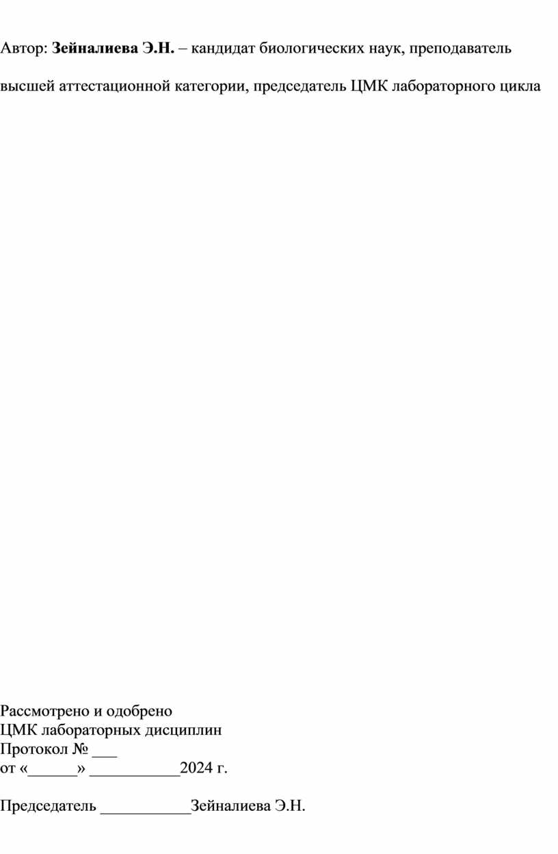 Автор: Зейналиева Э.Н. – кандидат биологических наук, преподаватель