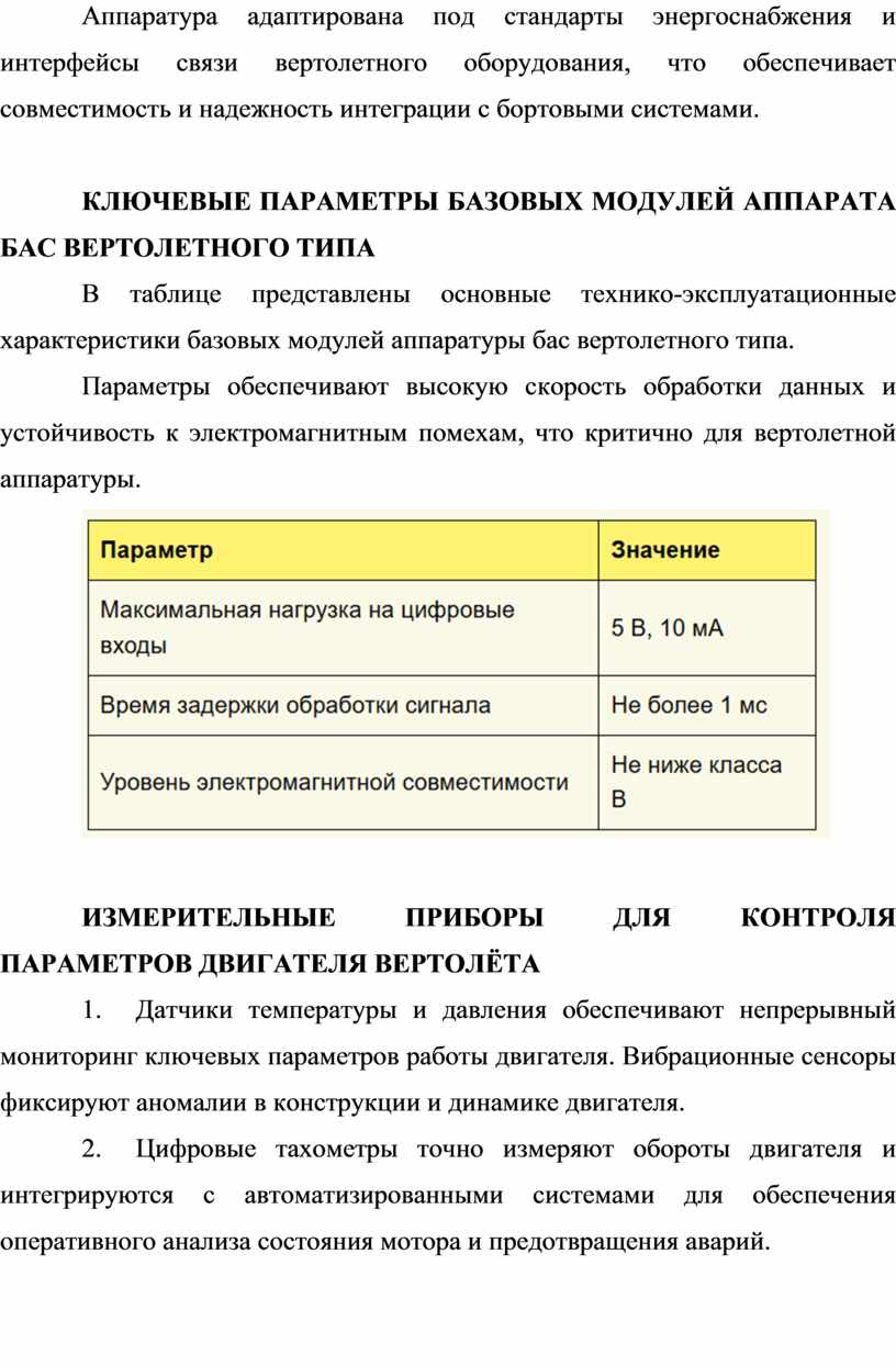 Измерительные приборы обеспечивают мониторинг температуры, давления, оборотов и скорости, что критично для безопасности и оптимизации работы вертолетов.
