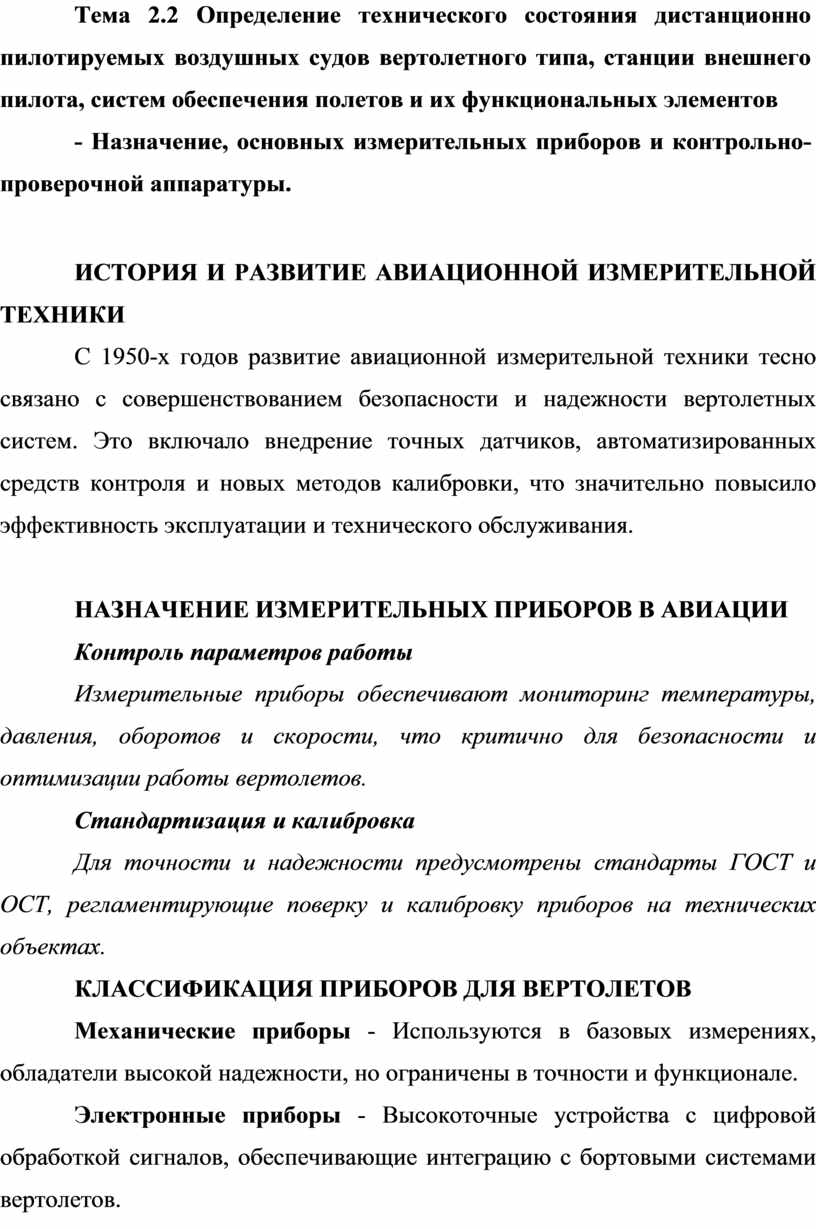 ОСОБЕННОСТИ ЭКСПЛУАТАЦИИ И ТЕХНИЧЕСКОГО ОБСЛУЖИВАНИЯ ПРИБОРОВ ВЕРТОЛЕТНОГО ТИПА