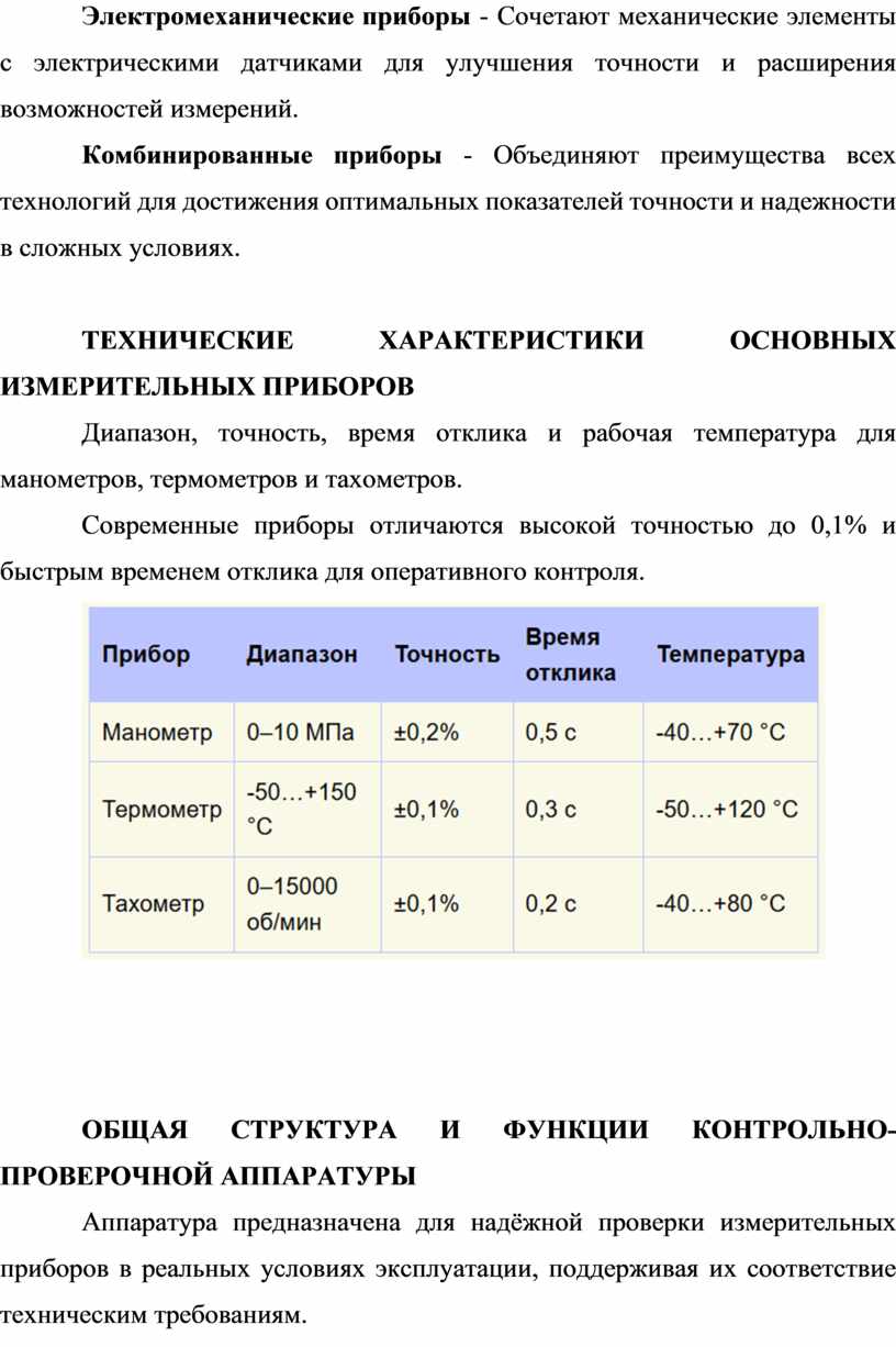 - Назначение, основных измерительных приборов и контрольно-проверочной аппаратуры.