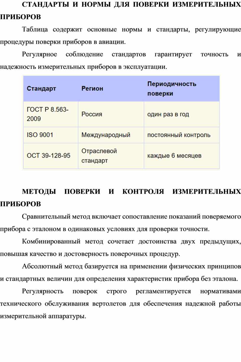 Регулярное соблюдение стандартов гарантирует точность и надежность измерительных приборов в эксплуатации.