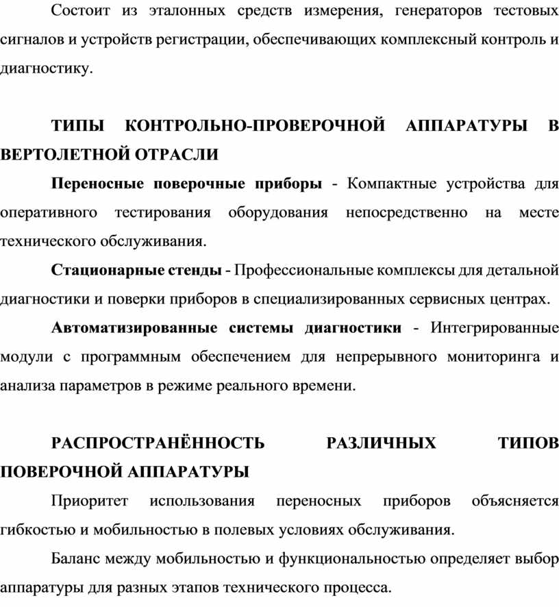 ТИПЫ КОНТРОЛЬНО-ПРОВЕРОЧНОЙ АППАРАТУРЫ В ВЕРТОЛЕТНОЙ ОТРАСЛИ