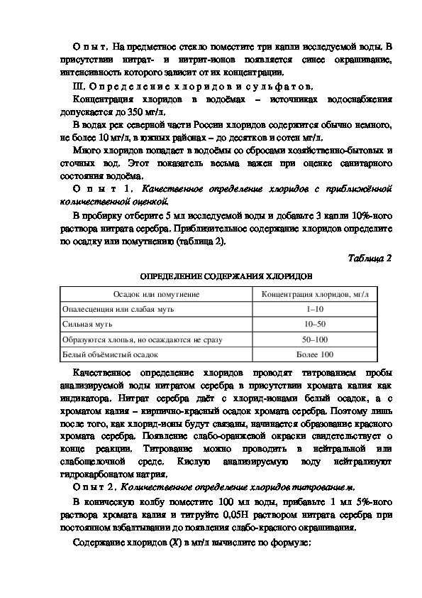 раствора нитрата серебра. Приблизительное содержание хлоридов определите