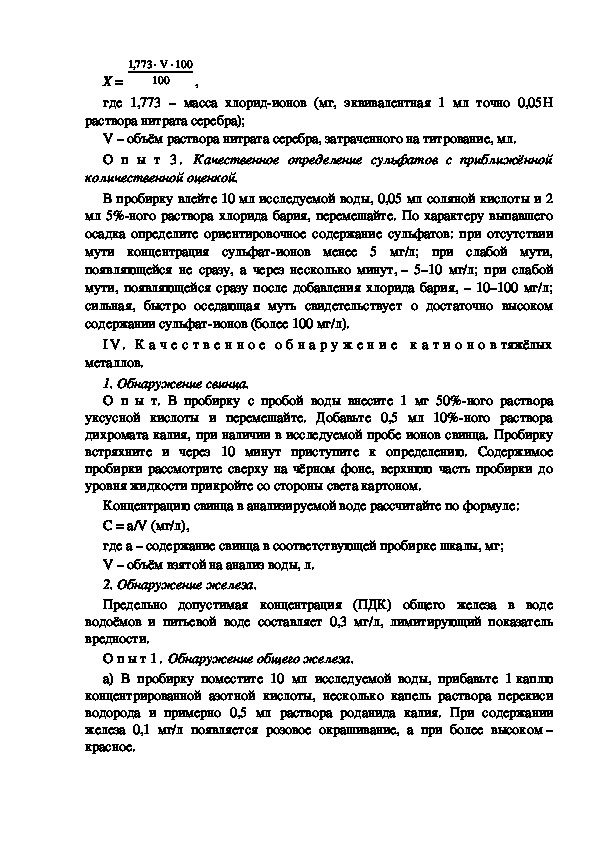 Содержание хлоридов (Х) в мг/л вычислите по формуле:,1