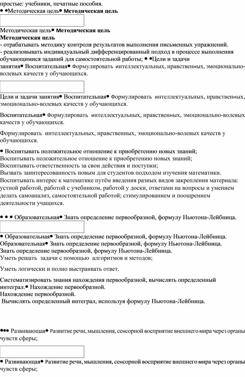 Знать определение первообразной, формулу Ньютона-Лейбница. Уметь решать задачи с помощью алгоритмов и методов; Уметь логически и полно выстраивать ответ. Систематизировать знания нахождения первообразной, вычислять определенный интеграл. |
