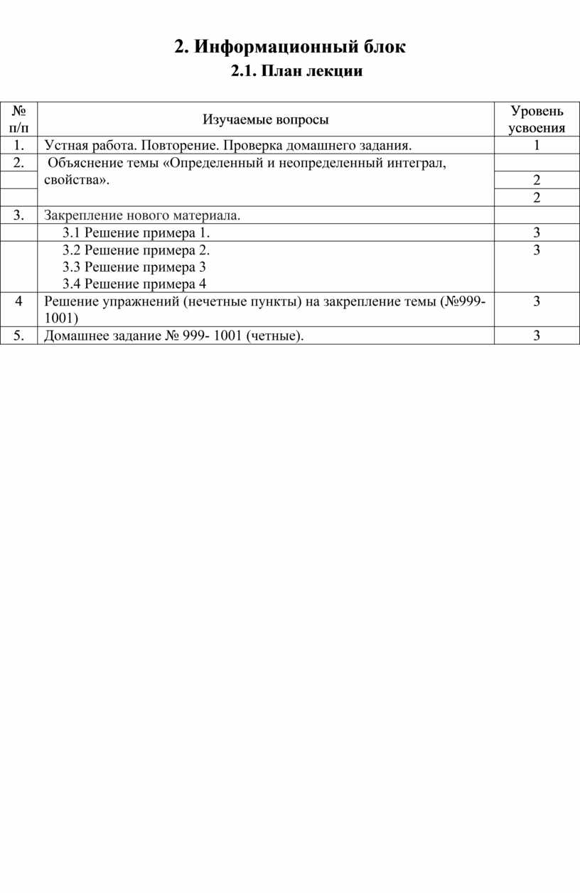 Данная методическая разработка по теме «Определенный и неопределенный интеграл, свойства» является уроком изучения нового материала. Урок построен так, чтобы обучающиеся, опираясь на ранее полученные знания, могли вывести формулы сами. Материал урока направлен на изучение определенного интеграла.