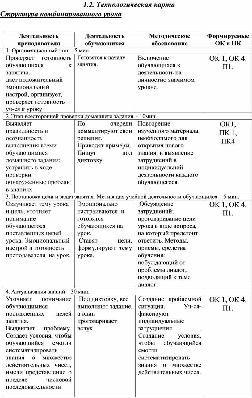 Типы учебных занятий урок изучения нового материала; комбинированный урок