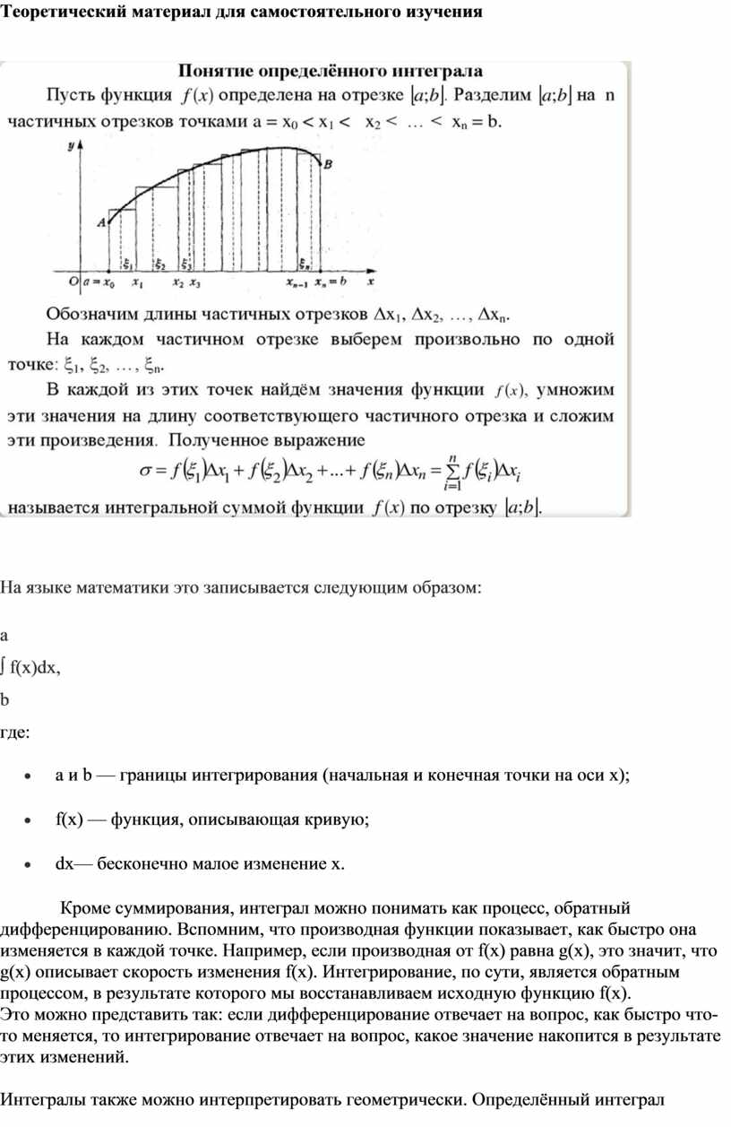 Определенный интеграл. Криволинейная трапеция. Пределы интегрирования. |