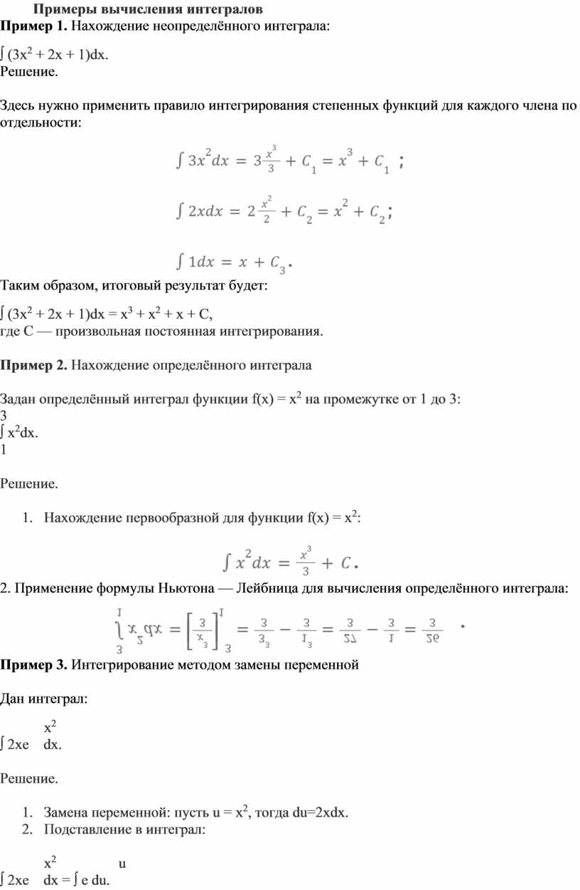 2. Применение формулы Ньютона — Лейбница для вычисления определённого интеграла: