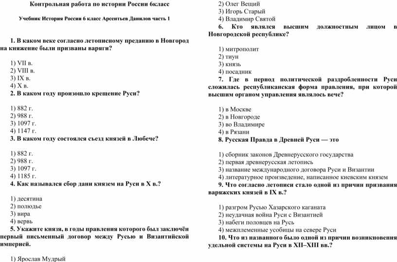 Учебник История России 6 класс Арсентьев Данилов часть 1